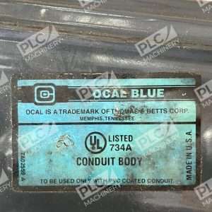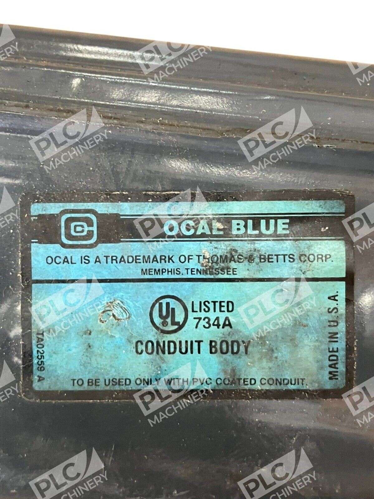 This product is a Thomas & Betts OCAL Blue TA02559 A 09942797 Conduit Body 734A. It is a conduit fitting used in electrical installations.