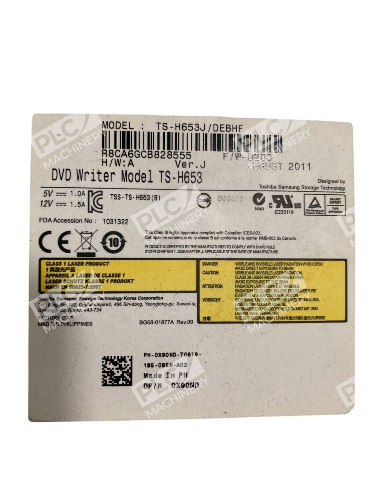 This is a Toshiba Samsung DVD writer model TS-H653, also known as TS-H653J/DEBHF. It is designed for writing data onto DVDs and is a reliable electronic component used in various industrial and business settings.