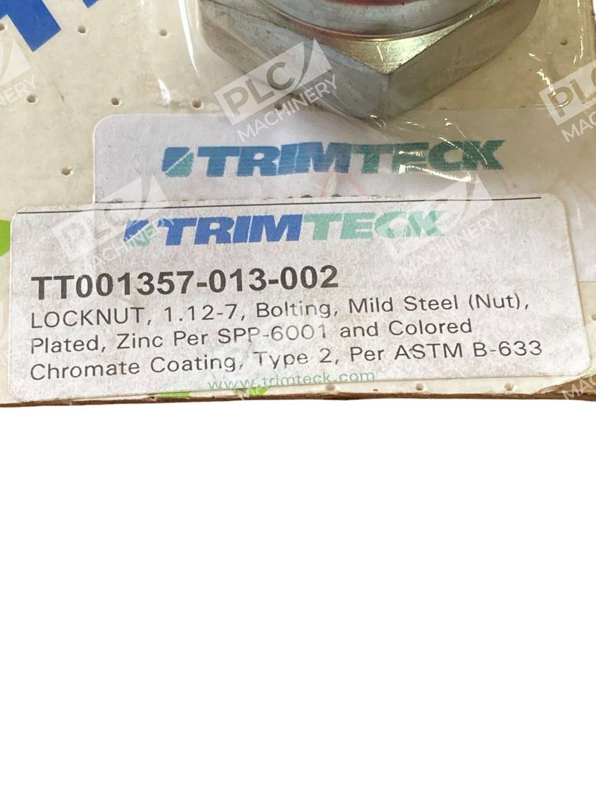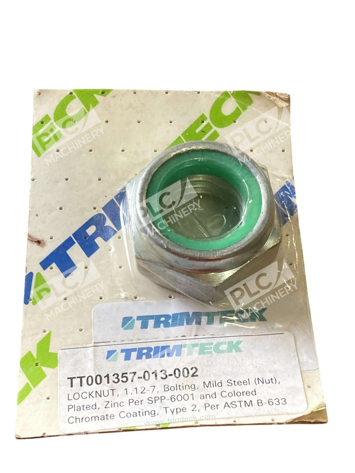 Trimteck Locknut TT001357-013-002 1.12-7 Zinc Plated w/ Green Locking Insert