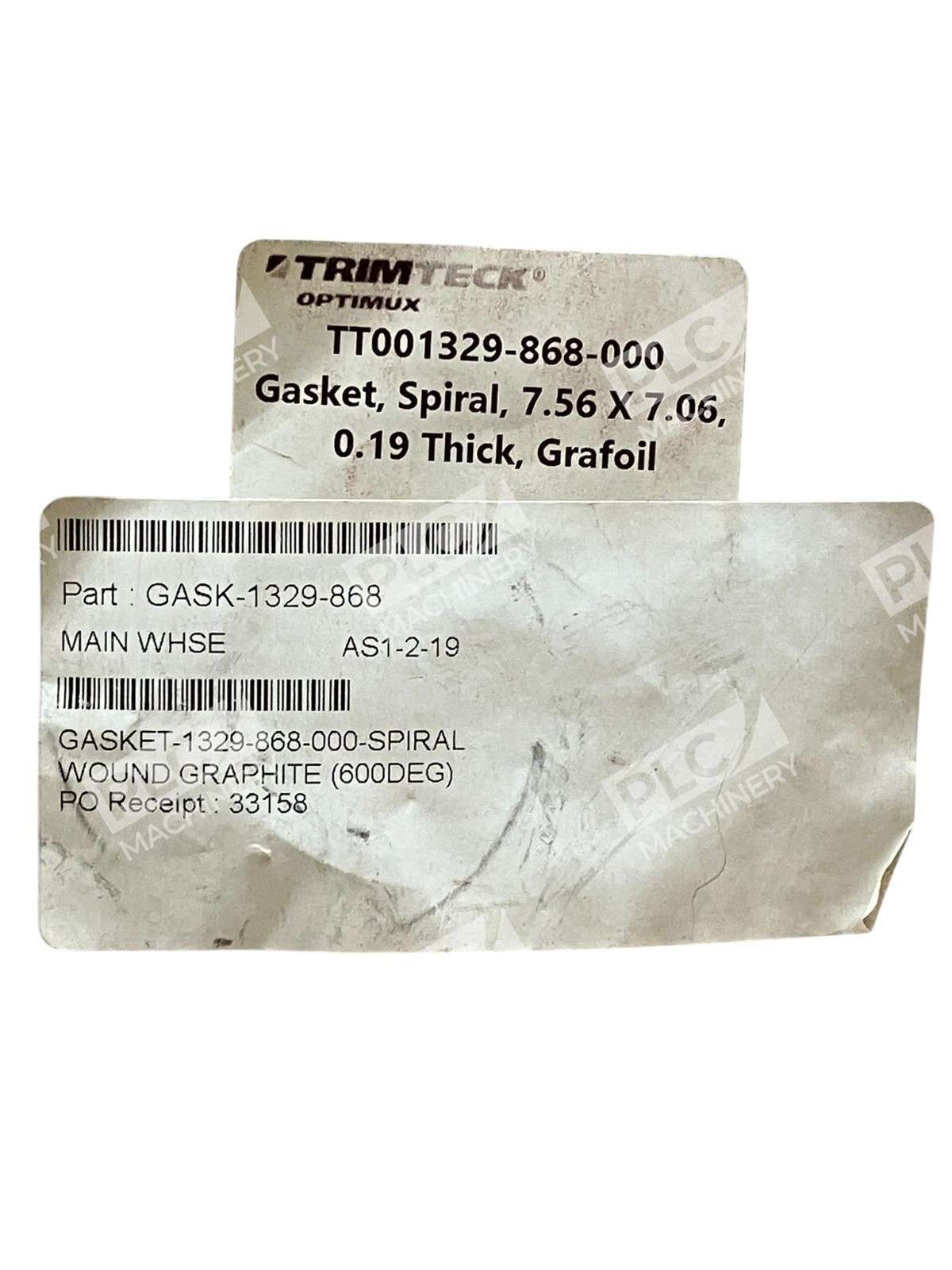 Trimteck TT001329-868-000 Spiral-Wound Gasket for Optimux Control Valve The Trimteck TT001329-868-000 is a precision-engineered spiral-wound gasket designed specifically for use with Optimux control valves. This gasket plays a crucial role in ensuring a secure and leak-proof seal between the valve components, thereby maintaining optimal performance and safety in various industrial applications. Key Features Material Composition: Constructed with high-quality stainless steel and flexible graphite (Grafoil), the gasket offers excellent resistance to high temperatures and corrosive environments. Dimensions: With an outer diameter of 6.5 inches, an inner diameter of 6 inches, and a thickness of 0.12 inches, it is tailored to fit seamlessly within the specified valve assemblies. Temperature Range: Capable of withstanding temperatures up to 1500°F (816°C), making it suitable for demanding applications. Pressure Rating: Designed to perform under high-pressure conditions, ensuring reliability and durability. Applications This spiral-wound gasket is ideal for use in industries such as oil and gas, chemical processing, and power generation, where maintaining a tight seal under extreme conditions is essential for operational efficiency and safety. Installation and Maintenance For optimal performance, it is recommended to follow the manufacturer’s guidelines during installation. Regular inspections should be conducted to ensure the gasket remains in good condition, and replacements should be made as necessary to maintain the integrity of the sealing system. By incorporating the Trimteck TT001329-868-000 spiral-wound gasket into your Optimux control valve system, you can enhance the reliability and longevity of your equipment, ensuring consistent performance in critical applications.