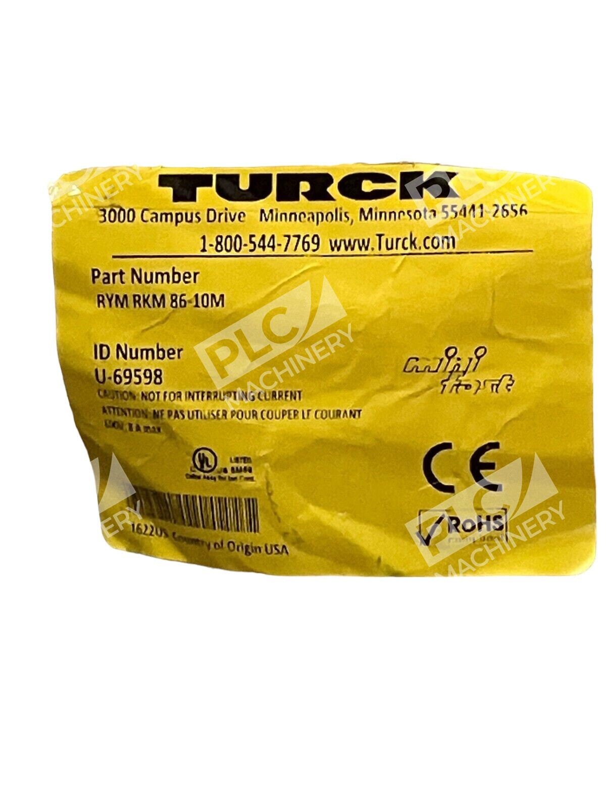 Turck RYM RKM 86-10M Cable Assembly U-69598