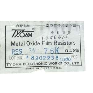 TY-OHM Metal Oxide Film Resistors RSS 3W 75KOhm