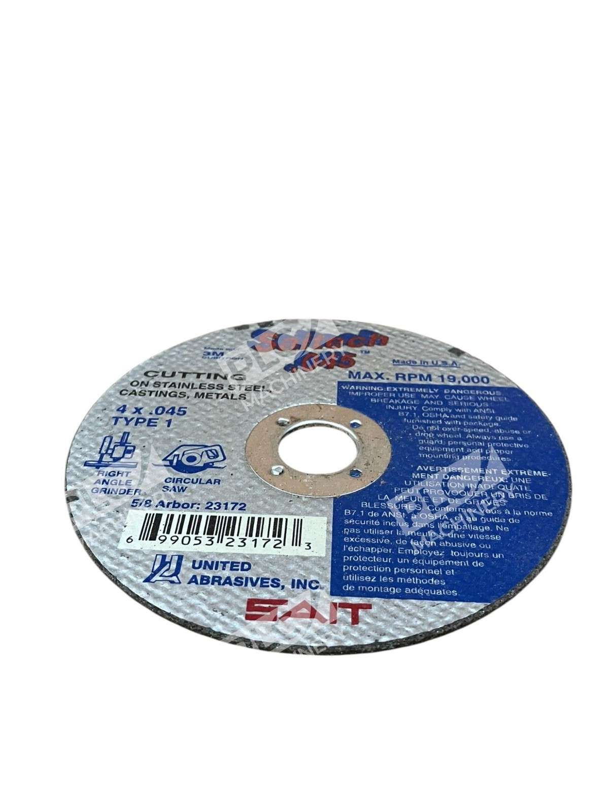 The United Abrasives SAIT 4×0.045×3/8″ Cutting Wheel 23172 is a high-performance cutting wheel designed for metalworking applications. Made with ceramic aluminum oxide material, this cutting wheel offers durability and efficient cutting capabilities. With a diameter of 4 inches and a thickness of .045 inches, it is suitable for cutting through various types of metals and stainless steel. The package includes a total of 9 cutting wheels, each with an arbor size of 5/8 inches, allowing for easy installation on cut-off machines. With a maximum RPM of 19,000, this cutting wheel is a reliable choice for precision cutting in various industrial settings.