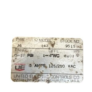 With its compact design, high sensitivity, and reliable performance, the United Electric J6-142-9515 pressure switch is a valuable component for maintaining optimal pressure control in various industrial settings.
