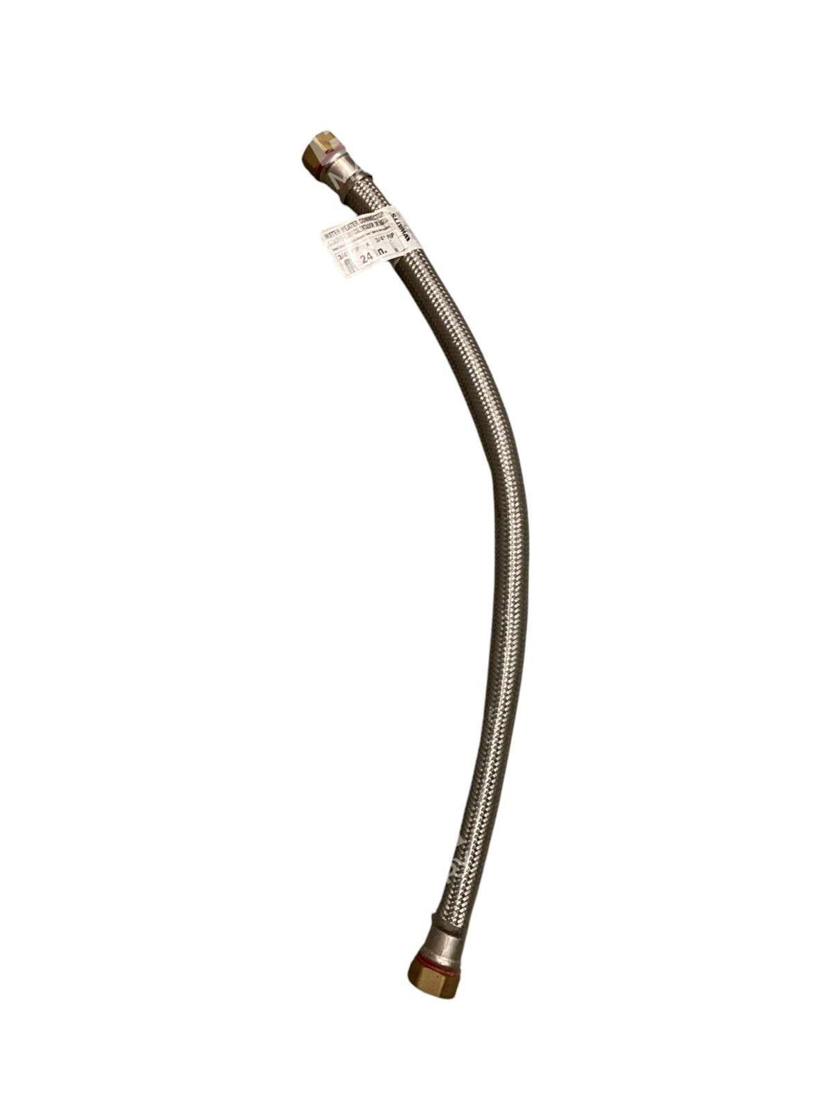 This product is a Watts Braided Stainless Steel Water Heater Connector with a 3/4″ FIPx3/4″ FIP connection and a length of 24″. It is designed for use in connecting water heaters and is made of durable stainless steel material by FlexConnect.