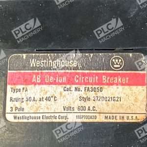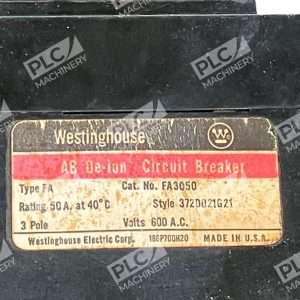 Westinghouse 600VAC 3 Pole 50A AB De-ion Circuit Breaker FA3050