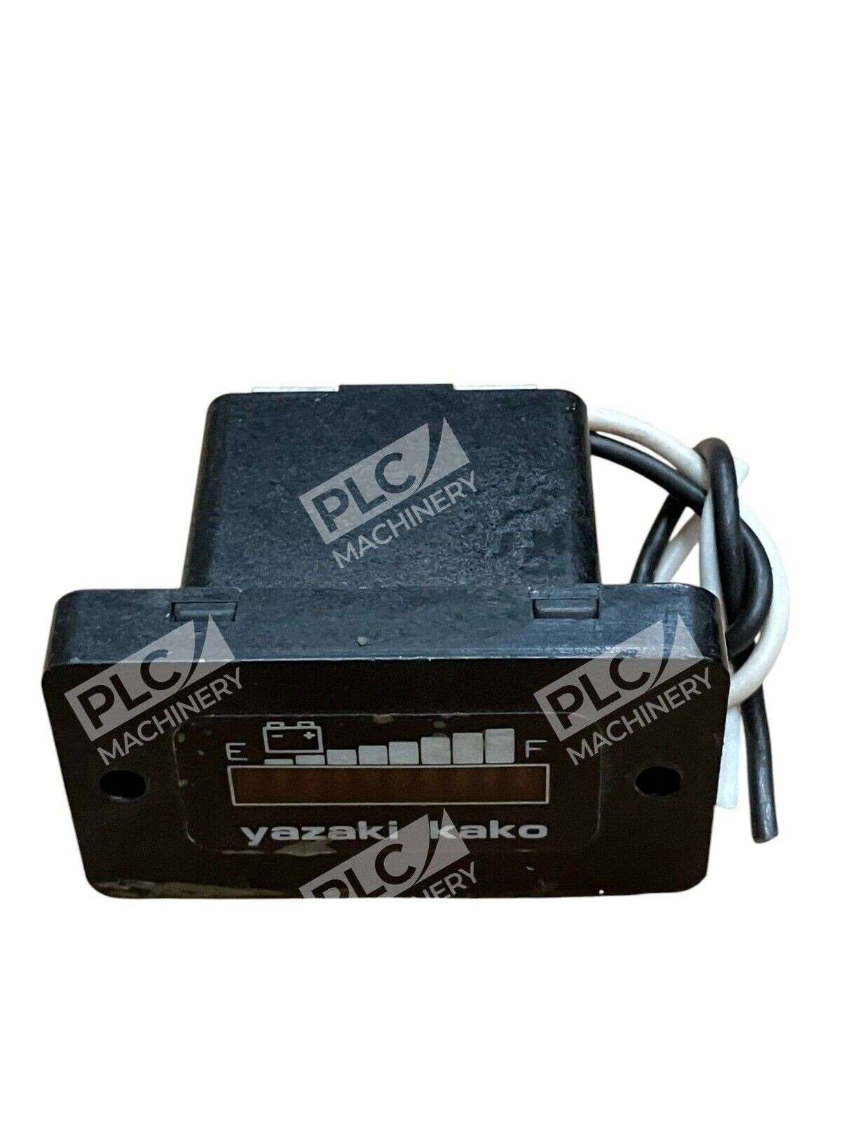 The product is a Yazaki Kako Meter Battery Level Indicator Panel Mount with the label TKDR35R22/B575N. It is a car battery charge level indicator designed for panel mounting.