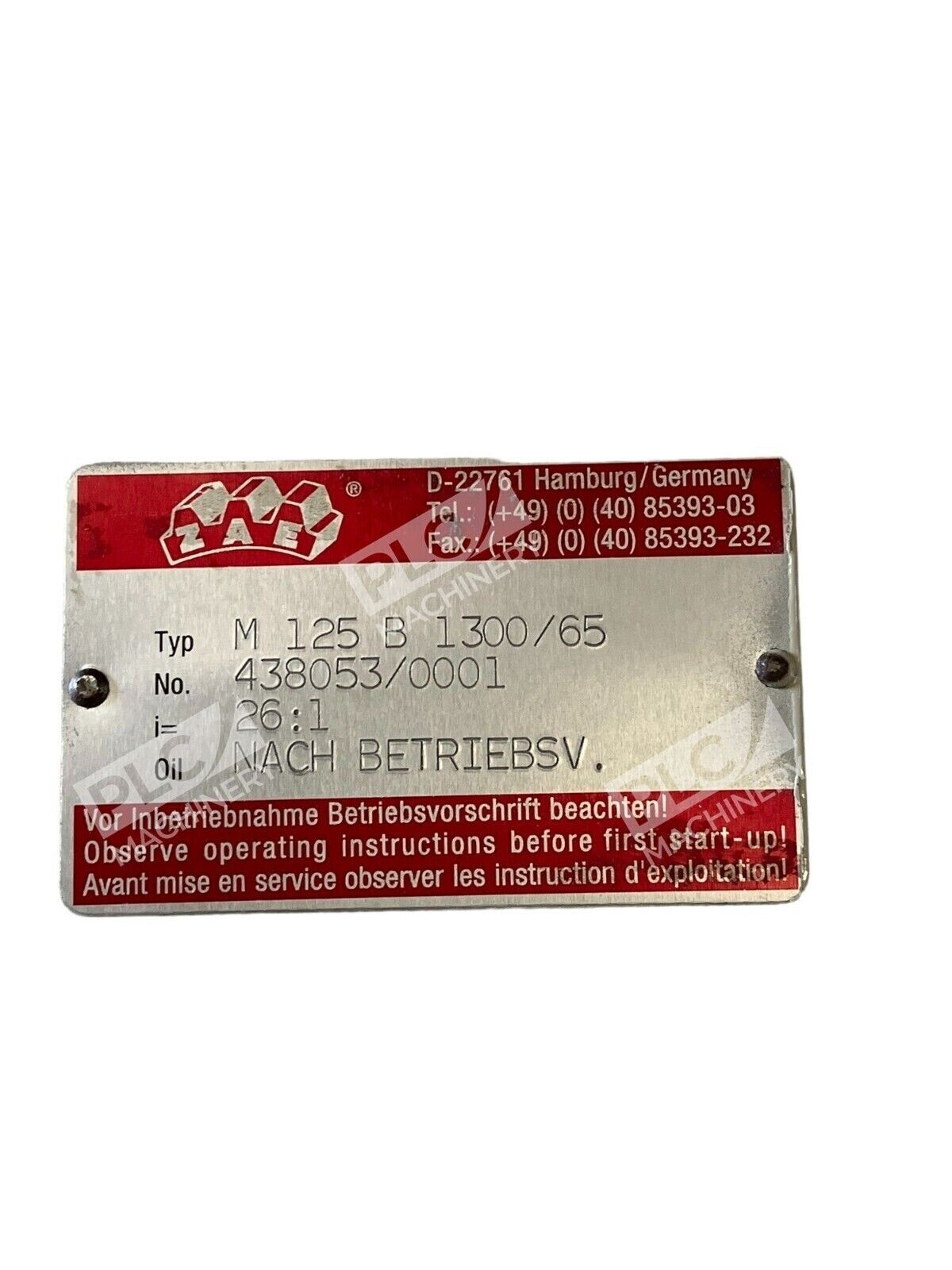 This ZAE M 125 B 1300/65 gearbox reducer is a reliable and efficient solution for mechanical power transmission. Made by the trusted brand Zae, it offers a gear reduction of 26:1 and is suitable for various industrial automation and motion control applications.